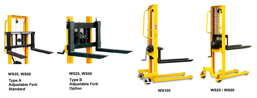 * Adjustable fork width from 160mm to 690mm (WS25,WS50).